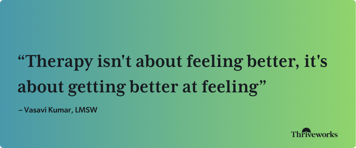 Starting therapy for the first time feels like stepping into the unknown. I know because I’ve been there: sitting in a waiting room, wondering what I’d gotten myself into, with a head full of assumptions about what therapy was “supposed” to look like. (It turns out most of those assumptions were wrong.) Maybe you’re picturing yourself on a couch while a distant therapist scribbles notes and asks, “How does that make you feel?” Or maybe you’re wondering if therapy will actually work, if you’ll click with your therapist, or how long it’ll take before you feel different. The reality is that therapy looks different for everyone, and no two journeys are exactly alike. But one thing does apply to everyone: Therapy has the power to genuinely change your life. Whether you’re still on the fence or already have your first appointment scheduled, hearing directly from therapists can help you feel more prepared for what’s ahead. That’s why we asked 16 mental health professionals this simple question: “What’s one thing you wish people knew before they started therapy?” Their answers might surprise you. 1. You don’t need to be in crisis to start. You don’t need to be in crisis to benefit from therapy. It can help you better understand yourself, develop healthy coping skills, and improve your relationships. While it can be hard to prioritize yourself and make space for therapy, once you start, you’ll often find you can navigate life’s challenges more effectively—and the support can have lasting impact. – Saba Harouni Lurie, Licensed Marriage and Family Therapist and Board-Certified Art Therapist 2. There’s no “right” way to do it. There’s no “right” way to use therapy. Some people worry about what to talk about or how to bring things up, but the best way to use therapy is however you want or need it. Your therapist will meet you where you are while gently challenging you along the way. You can even talk with your therapist about how to best use your time together. – Madeline Weinfeld Shill, Licensed Clinical Social Worker 3. Progress happens in small steps. Progress usually comes in small, incremental steps rather than sudden breakthroughs. Embracing this perspective helps you stay engaged in the process and builds the resilience and openness to change that are essential for lasting benefits. – Monica Cwynar, Licensed Clinical Social Worker at Thriveworks 4. Prepare to feel everything. Therapy isn’t about feeling better, it’s about getting better at feeling. If you’re looking for quick relief, therapy will frustrate you. But if you’re ready to sit in discomfort, get radically honest, and take responsibility for your life, therapy will change everything. – Vasavi Kumar, Licensed Master Social Worker and author of “Say It Out Loud” 5. Finding the right therapist is like dating—you might need a few tries. You can be picky when choosing a therapist. The therapeutic relationship is the most important part of therapy, so if you don’t feel connected to your therapist or they’re just “OK,” it’s probably not the best match. You deserve someone you actually like and feel seen by. – Leah Aguirre, Licensed Clinical Social Worker 6. It’s about finding yourself, not fixing yourself. Therapy isn’t really about reducing symptoms. It’s about realizing you aren’t the symptoms themselves. It’s about working with the symptoms and helping you find the human behind them. It takes hard work, but the result is both control and a new understanding of yourself. – Dr. Courtney Tracy, Registered Psychological Associate and author of “Your Unconscious Is Showing” 7. Your therapist wants you to speak up. You are the expert on you. I always encourage self-advocacy because you know yourself better than anyone. It’s always OK to ask for a new therapist if you’re not comfortable or request different interventions that better fit your lifestyle. Therapy should be a safe space for you to be your truest self with absolutely no judgment. – Karen Ortman, Licensed Clinical Social Worker Candidate at Thriveworks 8. You’re “choosing your hard” either way. It’s hard to begin therapy and lean into the healing work: confronting painful emotions, examining difficult patterns, challenging long-held beliefs. But it’s also hard to resist healing: carrying unresolved trauma, maintaining unhealthy coping mechanisms, navigating life with limited emotional tools. The difference is that the hardness of healing leads to growth, while the hardness of avoidance leads to stagnation. Therapy isn’t about eliminating difficulty from your life; it’s about choosing difficulties that transform you rather than deplete you. – Lauren Auer, Licensed Clinical Professional Counselor 9. The real work happens between sessions. Therapy isn’t a “magic cure.” Yes, it can help, but the sessions themselves aren’t what lead to change. It’s what you do between sessions with the content from those sessions that helps you reach your goals. – Brandy Smith, Licensed Psychologist at Thriveworks 10. Therapy only works if you’re honest. Therapy is a two-way street. Your therapist is there to guide and support you, but they can’t read your mind. You’ll need to be open and honest for therapy to really work. There will be moments that feel uncomfortable or tough, but that’s part of the process. Therapy works best when you can be yourself without holding back. – Melissa Legere, Licensed Marriage and Family Therapist 11. You are always in control. You will not be asked to surrender control. Many people don’t know what to expect and fear that someone else will take control. As clinicians, we’re here to help you learn more about what’s troubling you and how to manage it within a collaborative relationship. So speak up if you need something different, have questions, or if something isn’t working. – Kate Hanselman, Psychiatric-Mental Health