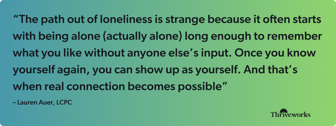 What if loneliness isn’t about being alone at all? One in six people worldwide experiences loneliness. Yet many of them have full social calendars, active group chats, and partners sleeping next to them every night. Sometimes the loneliest feeling isn’t isolation, but it’s being surrounded by people who don’t actually see you. We asked 14 experienced therapists what they wish more people understood about loneliness, and their insights completely reframe how to think about connection, starting with why your brain processes social rejection exactly like it processes physical pain. Why loneliness hurts like actual physical pain For thousands of years, human survival depended on staying connected to a group. Being alone meant you were more vulnerable to predators, starvation, and exposure. Your ancestors who felt motivated to seek connection when isolated were the ones who survived long enough to pass on their genes. In other words, loneliness evolved as a survival signal; just like hunger motivating you to eat, loneliness motivates you to reconnect. But your brain doesn’t just nudge you toward connection, it makes isolation hurt. Literally. Your brain processes social rejection using some of the same neural pathways it uses for physical pain. Research published in Proceedings of the National Academy of Sciences found that when people experienced intense social rejection (like looking at photos of an ex-partner after an unwanted breakup), their brains showed increased activity in regions that process physical pain—the same areas that light up when you burn your hand on a hot stove. What’s more, another study found taking acetaminophen (Tylenol) for three weeks reduced both self-reported hurt feelings and brain activity in pain-processing regions when people were socially excluded. A physical painkiller literally acted as a “social painkiller.” The physical consequences go beyond just feeling bad. A comprehensive meta-analysis of loneliness research found that social isolation and loneliness increase the risk of heart disease by 29% and stroke by 32%—comparable to known risks like anxiety and job strain. Another recent meta-analysis examining more than 310,000 participants found that loneliness was associated with a 14% increase in risk of early death. The bottom line: Connection isn’t a luxury. Your body needs it the same way it needs food and sleep. “Relationships offer grounding, support, shared experience, validation, and a reminder that we exist with others in the world,” explains Cynthia Shaw, Psy.D., a licensed clinical psychologist. When those connections are missing or feel hollow, the pain is real—emotionally and physiologically. The self-reinforcing trap Loneliness creates a vicious cycle. You feel lonely and crave connection, but at the same time, the thought of actually reaching out makes you anxious. Dr. Shaw explains that when you spend enough time alone, being around people starts to feel foreign. Just the idea of having a conversation or expressing yourself can feel overwhelming. Anyone who lived through the Covid-19 pandemic can likely relate. Your self-esteem takes a hit too. You start telling yourself stories—that you’re socially awkward, you don’t have much to offer, or people probably don’t want to hear from you anyway. And when that anxiety combines with feeling bad about yourself, your body responds. Dr. Shaw explains that your nervous system starts pumping out more cortisol, the stress hormone. You become hypervigilant, always on alert for rejection, even when there’s no real threat. Your ability to think clearly, make decisions, and follow through on plans all start to suffer. Loneliness can actually change how you think and function, which is why understanding what’s really going on matters so much. What 14 therapists want you to know about loneliness We asked 14 mental health professionals the same question: What’s one thing people misunderstand about loneliness that might actually help them feel less alone? Their responses challenge common assumptions and offer new ways to think about connection. These aren’t generic tips you’ve heard a dozen times before. They’re the insights therapists see play out repeatedly with real clients, and the reframing that actually helps. 1. Loneliness is part of being human. It says nothing about who you are. A common misconception is that feeling lonely means something is fundamentally wrong with you. In reality, loneliness is woven into the human experience and something we continuously navigate throughout our lives. Learning how to tolerate being alone is actually a skill that deepens your connection to yourself and can strengthen the relationships you build with others. Our sense of closeness with others naturally rises and falls. When you can accept that natural ebb and flow, loneliness becomes less of a threat. Instead, it becomes a reminder of how meaningful connection truly is. – Jacob Glose, licensed professional counselor with Thriveworks 2. Being lonely is not the same as being alone. Loneliness is different from solitude, and recognizing that distinction matters. If you’re lonely—alone not by choice—then making connections and doing self-work can help. But if it’s closer to solitude, when you intentionally choose to be alone with yourself, naming that difference and embracing it can help you use the experience for growth rather than fighting against it. – Kate Hanselman, psychiatric-mental health nurse practitioner at Thriveworks 3. You feel lonely because you’re performing, and it’s exhausting. You can feel profoundly lonely in a room full of people if you’re performing—pretending to feel one way when you actually feel another. When we mask our true feelings, we create distance. We keep others from really seeing us, and we keep ourselves from genuinely connecting with them. It becomes a cycle where the protection we think we’re creating actually deepen